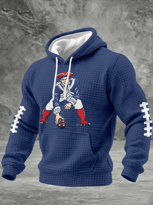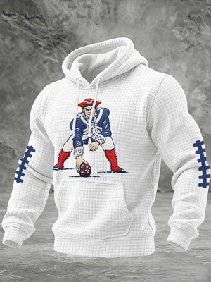 Men's Football Print Checkered Fabric Hooded Sweatshirt