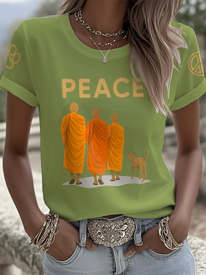 Retro Walk For Peace Monks With Aloka Dog Print T-Shirt