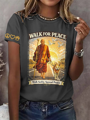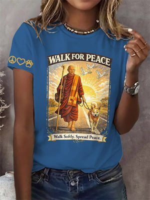 Retro Walk For Peace Monks With Aloka The Peace Dog Walk For Peace Walk Softly. Spread Peace Print T-Shirt