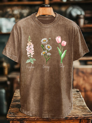 🔥Buy 3 Get 15% Off🔥Unisex Floral Fdt Washed Cotton T-Shirt