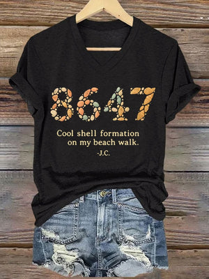 🔥Buy 3 Get 15% Off🔥V-Neck Retro 8647 Cool Shell Formation On My Beach Walk Print T-Shirt