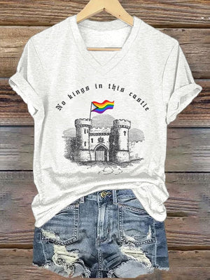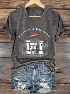 🔥Buy 3 Get 15% Off🔥V-Neck Retro No Kings In This Castle Print T-Shirt