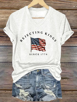 🔥Buy 3 Get 15% Off🔥V-Neck Retro Rejecting Kings Since 1776 Print T-Shirt