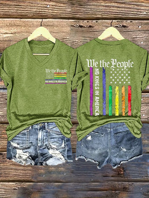 🔥Buy 3 Get 15% Off🔥V-Neck Retro We The People No Kings In America Print T-Shirt