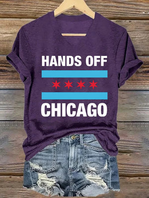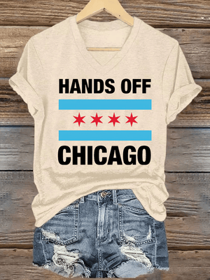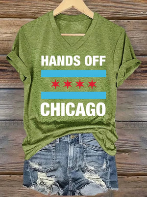 🔥Buy 3 Get 15% Off🔥V-neck Women's Hands Off Chicago, Chicago will always fight back Print T-Shirt