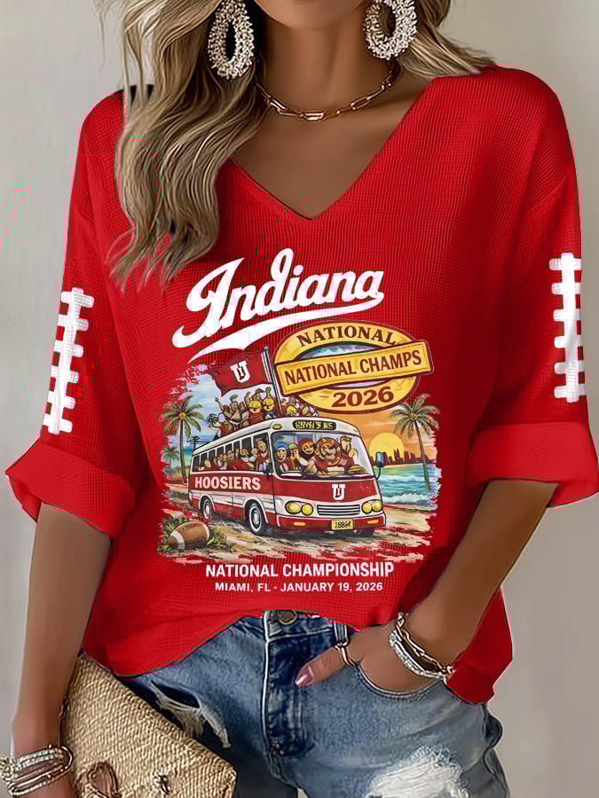 Women's football Print Waffle Long Sleeve T-Shirt