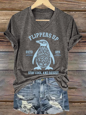 🔥Buy 3 Get 15% Off🔥Women's Penguins Flippers Up Printed V Neck T-shirt