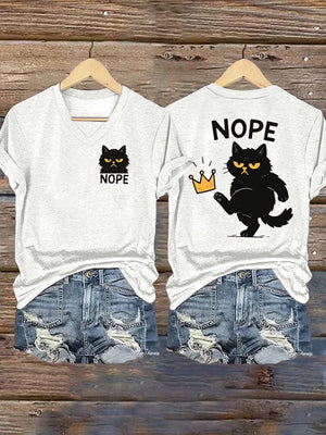 🔥Buy 3 Get 15% Off🔥Women's Retro No Kings In America Cat Crown Nope Print Short Sleeve T-Shirt